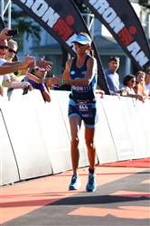 Again, going through town I felt like a rock star! I was told that I was in the lead in my age group! In and out of T1 quickly, and onto the run I saw my parents first and then the IFE group! I felt great and I was psyched. The run is my strength, so I felt confident I could hold my lead. I started running my "all day pace". I knew I could run the entire marathon without stopping, and though I would most likely slow down the 2nd loop, I felt confident that I had first place tied up.